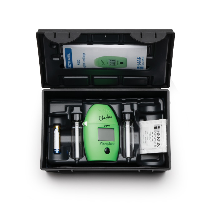 Il Checker® HC (colorimetro portatile) HI713 è uno strumento semplice, preciso e conveniente per misurare i fosfati. I fosfati sono additivi alimentari comuni che esaltano il sapore e fungono da agente tampone. Importanti per la crescita e lo sviluppo delle radici delle piante, i fosfati sono presenti anche nei concimi. Tuttavia, alte concentrazioni di fosfati sono dannose per l'ambiente; per questo motivo i livelli di fosfati devono essere tenuti sotto controllo nelle reti idriche naturali e comunali. Ideato come un'alternativa più precisa rispetto ai test kit chimici.