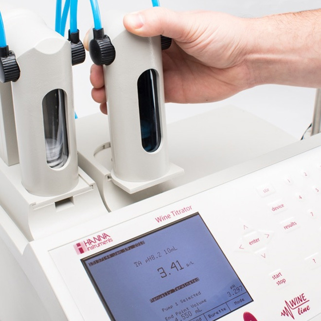 Il titolatore Potenziometrico automatico HI901W-02 è ideale per le cantine che necessitano di risultati accurati, facilità di utilizzo e versatilità del sistema in base alle necessità di analisi. Viene fornito con metodi precaricati specifici per le analisi del vino, e con il Supporto Tecnico HANNA, è possibile adattarli alle reali necessità di analisi.