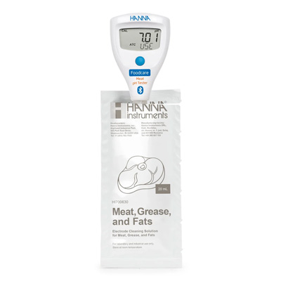 HI9810362 è fornito con una soluzione detergente progettata per mantenere la tua sonda libera da oli e proteine presenti nella carne e nei prodotti a base di carne. Questa combinazione concentrata di detergenti pulisce rapidamente ed efficacemente il tester, garantendo che rimanga in condizioni ottimali.