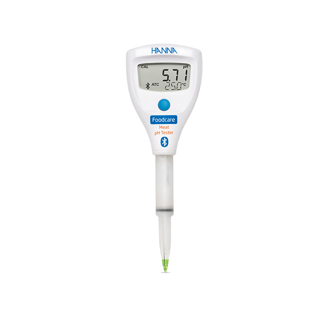 Progettato per rendere semplice il test del pH della carne, il Tester di pH Wireless per Carne HALO2 (HI9810362) è progettato per resistere all'ambiente impegnativo degli impianti di lavorazione della carne. La sonda integrata presenta un giunto di riferimento aperto, una punta in vetro conica e un design a manicotto removibile che lo rende ideale per misurare il pH della carne.