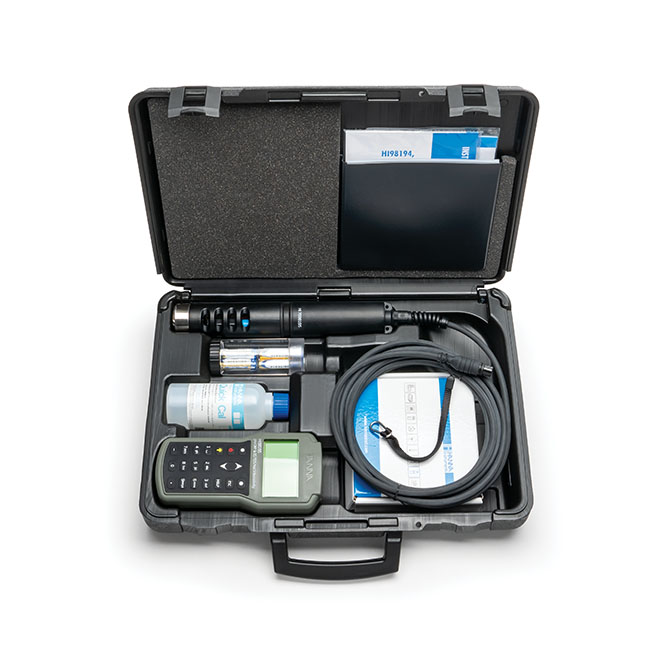 HI98195 è uno strumento portatile a tenuta stagna, in grado di misurare e memorizzare fino a 10 diversi parametri per la qualità dell'acqua (5 misurati, 5 calcolati). La sonda multisensore è dotata di microprocessore interno e permette la misura dei parametri fondamentali, inclusi pH, ORP, conducibilità e temperatura. Le misure sono trasferite in formato digitale dalla sonda allo strumento, che consente di visualizzare e salvare i dati. Il sistema è semplice da configurare e da utilizzare. HI98195 è fornito con tutti gli accessori necessari in una robusta valigetta.