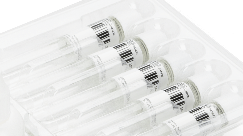 Le fiale Hanna contengono reagente predosato, così l’utente deve semplicemente aggiungere una piccola quantità di campione per utilizzarlo come bianco e successivamente 4 gocce di reagente Nessler per misurare la concentrazione. Con le fiale predosate il tempo di preparazione per l’analisi viene drasticamente ridotto e la procedura semplificata. Le fiale e i tappi dei reagenti sono stati progettati per evitare fuoriuscite accidentali di reagenti.