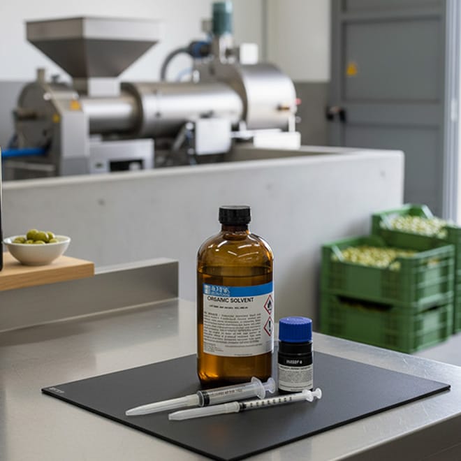 Per determinare l'acidità dell'olio d'oliva, si utilizza un titolante di idrossido di sodio, che reagisce con gli acidi presenti nel campione dopo essere stato sciolto in un solvente organico. L'analisi avviene mediante un'aggiunta goccia a goccia del titolante basico. Quando la soluzione raggiunge il punto di fine, cambia colore diventando rosa. La quantità di titolante utilizzato, misurata in millilitri, determina quindi la percentuale di acidità dell'olio.