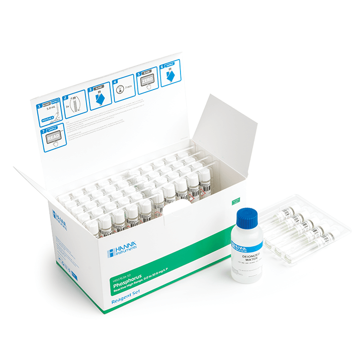 I reagenti in fiala HI93763A-50 sono ideali per la determinazione di ortofosfati (fosforo reattivo scala alta) utilizzando lo spettrofotometro. Confezionati in un kit da 50 test, questi reagenti offrono una precisione eccezionale e sono forniti con un certificato di qualità. HI93763A-50 sono reagenti in fiala che seguono un adattamento del metodo acido vanadomolibdofosforico 4500-P C da "Standard Methods for the Examination of Water and Wastewater, 20th edition.