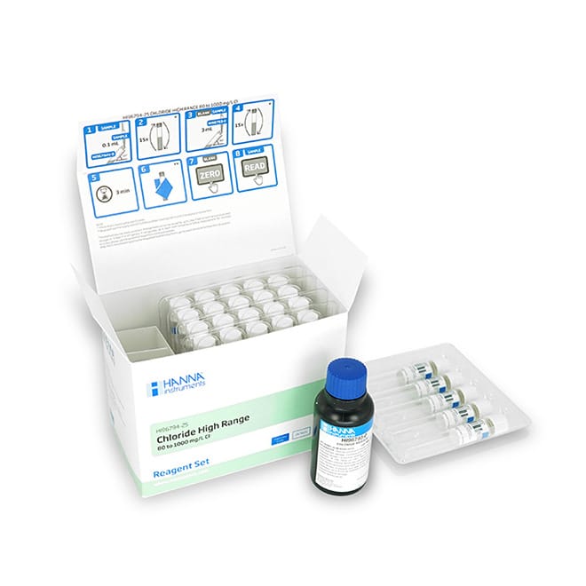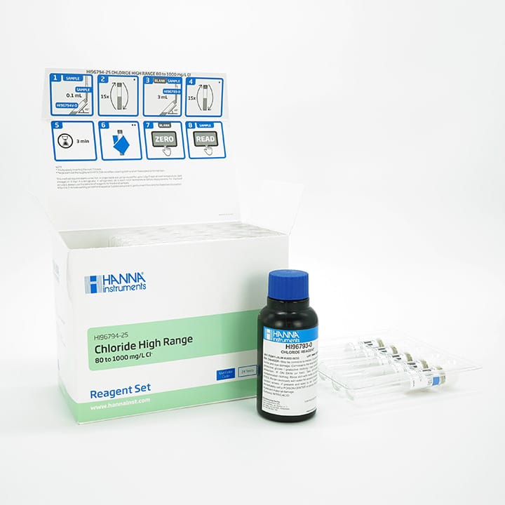 HI96794-25 è il kit di reagenti per la determinazione colorimetrica dei Cloruri Scala Alta, ideale per analisi precise con i fotometri compatibili Hanna. La confezione contiene 25 fiale pronte all’uso, prodotte con standard elevati per garantire risultati affidabili e tracciabili nel tempo.