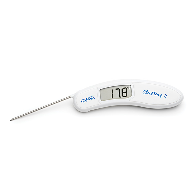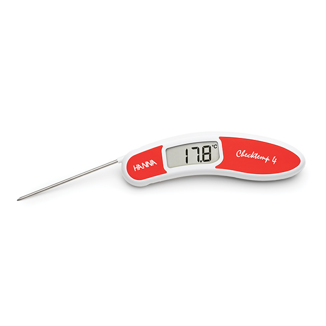 HI151 Checktemp 4 è un termometro digitale, ad ampia scala (fino a 300°C) ed alta precisione, perfetto per cucine professionali e domestiche. La sonda a penetrazione in acciaio inox, ripiegabile, consente misure accurate su una vasta gamma di alimenti freschi, cotti o semi-congelati. La punta sottile della sonda consente di misurare con precisione anche piccoli campioni di cibo. Sono disponibili vari modelli con sei diverse colorazioni, ciascuno da assegnare ad un diverso alimento per evitare contaminazioni.