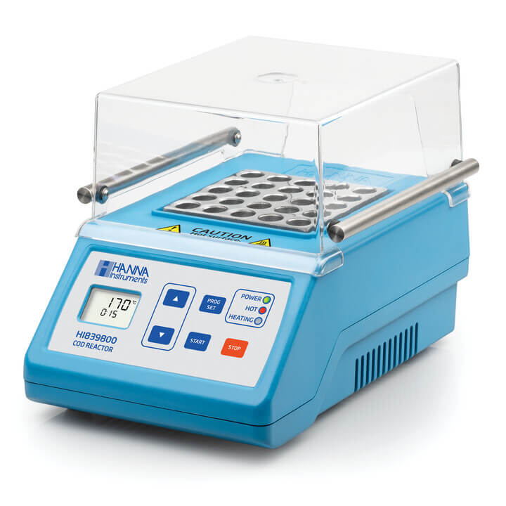 Il termoreattore HI839800 è dotato di tre programmi custom e tre programmi pre-impostati per la digestione simultanea di 25 fiale. Il termoreattore si riscalda automaticamente alla temperatura impostata, mantenendola fino al termine del timer. Una volta terminato il tempo, viene emesso un segnale acustico e l'elemento riscaldante si spegne. Il sistema è dotato di un dispositivo di sicurezza che previene eventuali surriscaldamenti e la temperatura è sempre visualizzata sul display, anche se non è attivo alcun programma.
